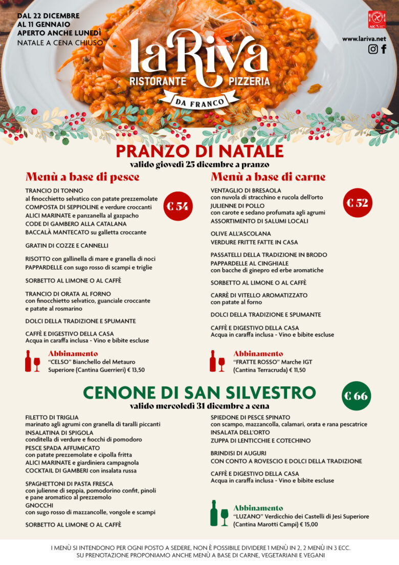 MENU SPECIALI Menu Natale e San Silvestro Il menu pensato dal nostro Chef per il pranzo del 25 Dicembre e per la cena del 31 Dicembre 2025 VEDI IL NOSTRO MENU ALLA CARTA